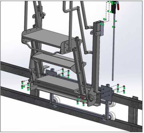 The foldings stairs can be mounted with a roller system to a sliding frame. This enables the operator to slide the foldings stairs in the desired position, exactly in front of the selected manhole.