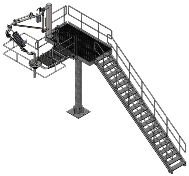 We design and deliver complete loading platforms, including access stairs, folding stairs with safety cage and loading arms.