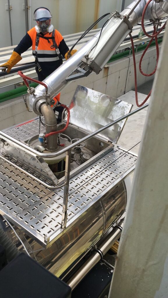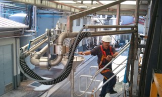 We offer two types of automatic loading arms. The first type is fully operatable by the operator from the control room. This type we call semi automatic. The other type, is fully automatic. This loading arm works with camera’s and laser to automatically find its way to the selected manhole of the truck. In both cases no operator has to be on the loading platform during the loading process.