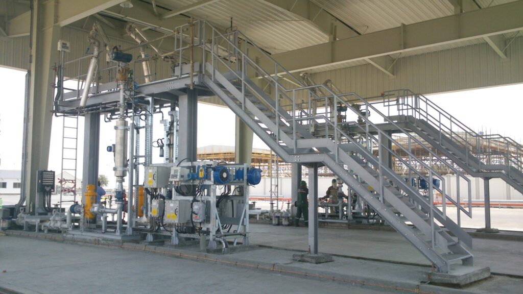 We supply fully equipped loading platforms, with all the equipment for loading, fall protection, grounding monitoring and flow metering.